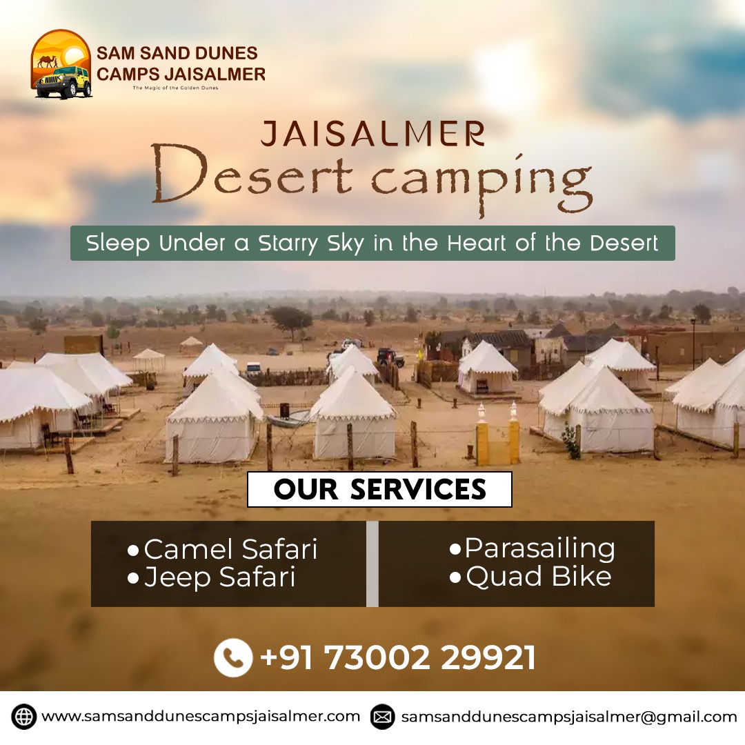 Welcome to Sam Sand Dunes Camps Jaisalmer, where adventure and comfort merge to offer an unforgettable desert experience. Located about 40 kilometers from Jaisalmer, our camps provide an exceptional way to explore the vast Thar Desert. Whether you're seeking the best desert camp in Sam Sand Dunes or an exciting desert safari tour in Jaisalmer, we have something for everyone.